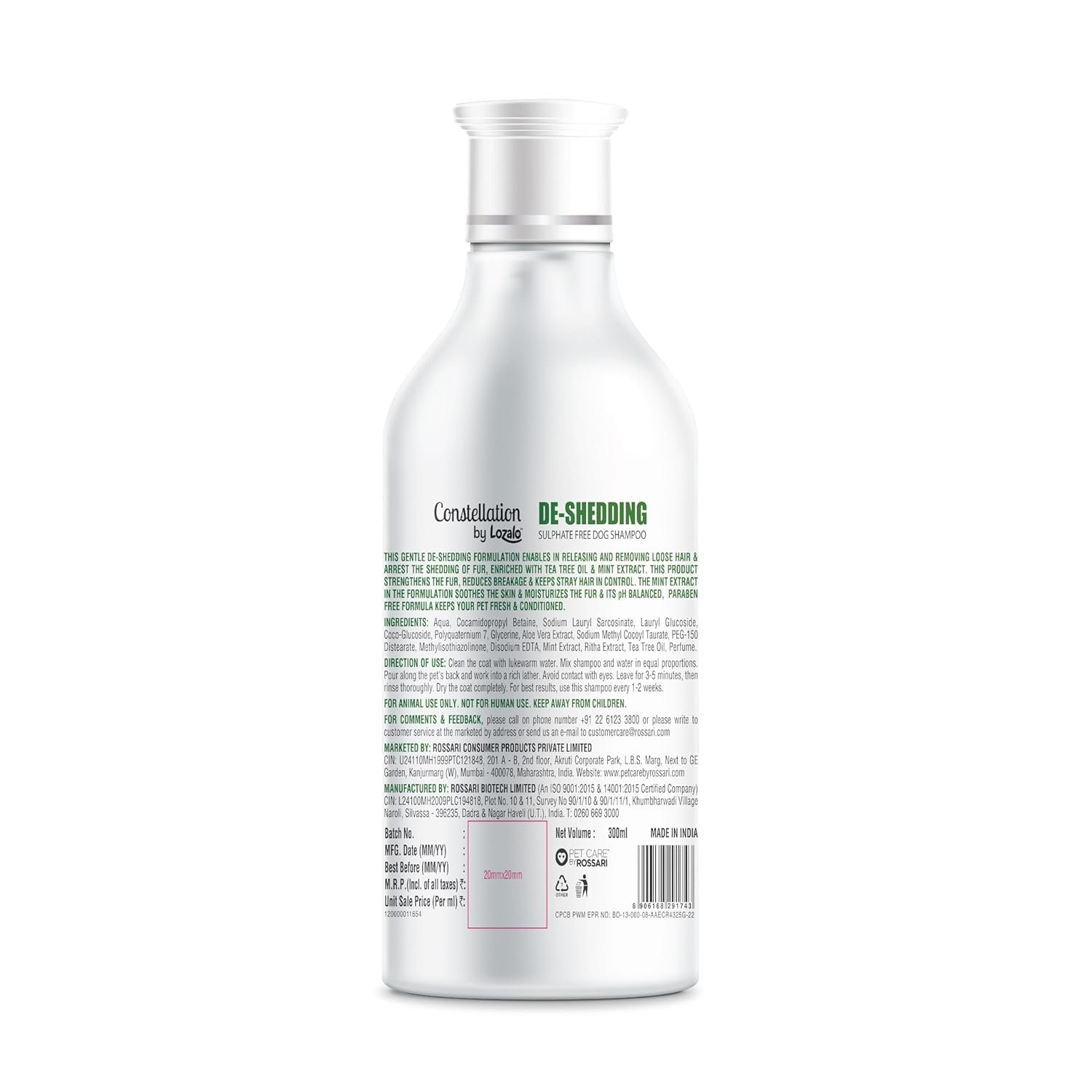 Lozalo Constellation De-Shedding Dog Shampoo is specially formulated to reduce excessive shedding and promote a healthier, stronger coat. Enriched with nourishing ingredients and natural conditioners, this shampoo helps to remove loose fur and undercoat while strengthening hair roots. Ideal for regular grooming, it supports a cleaner home environment and a shinier, healthier-looking coat for your pet.