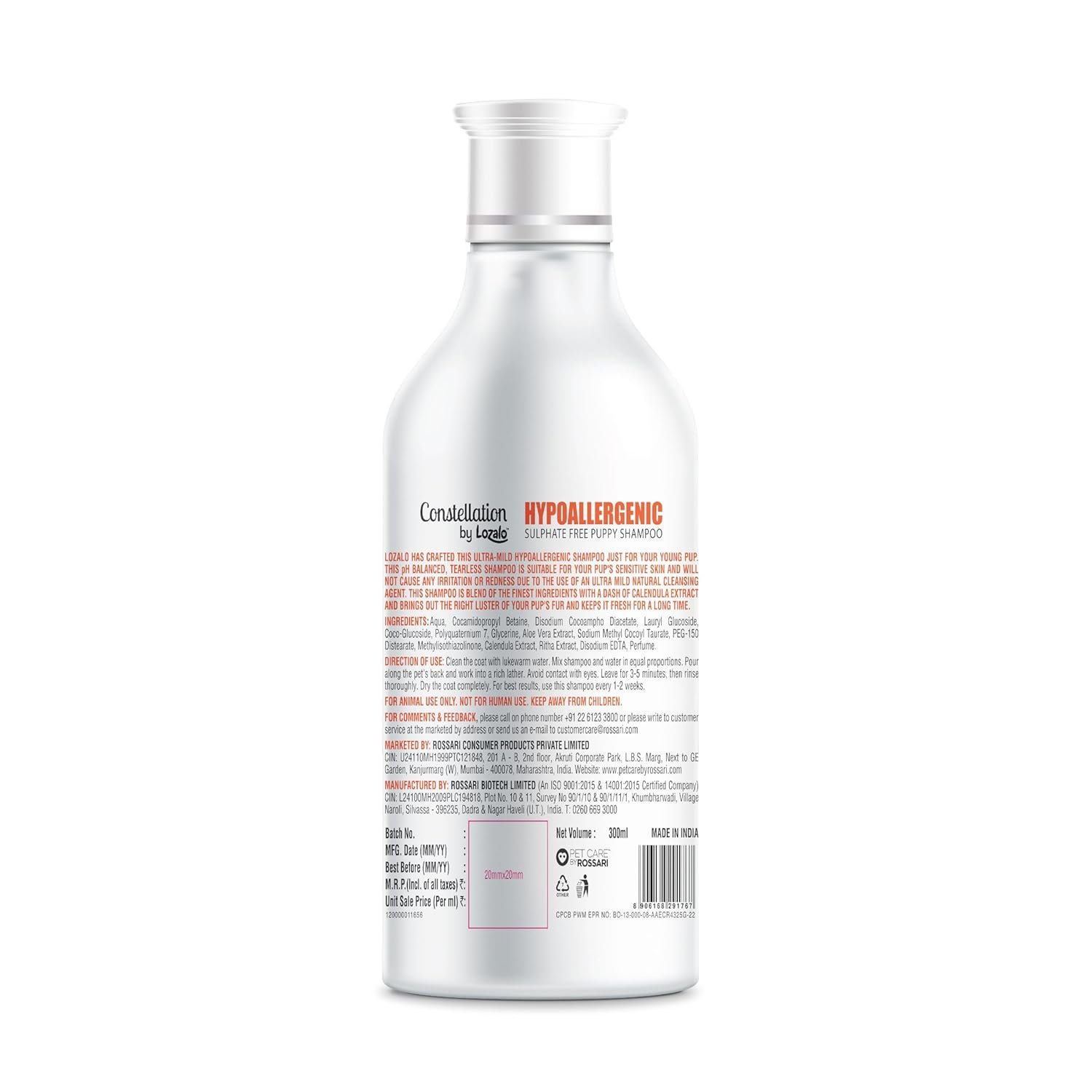 Lozalo Constellation Hypoallergenic Dog Shampoo is specially formulated for dogs with sensitive or allergy-prone skin. Made with mild, skin-friendly ingredients, this gentle shampoo cleanses without causing irritation or dryness. It helps maintain a healthy coat while soothing sensitive skin, making it ideal for regular grooming of puppies and adult dogs alike. Free from harsh chemicals and artificial fragrances, it provides a safe and calming bathing experience.