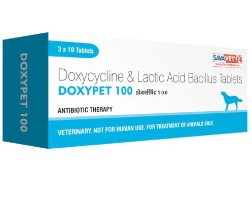 Doxypet tablets contain doxycycline hydrochloride along with lactic acid bacillus spores. Doxycycline is an antibiotic of the tetracycline class. It is bacteriostatic in nature and works by inhibiting protein synthesis at the initiation step by interacting with the 30S ribosomal subunit.