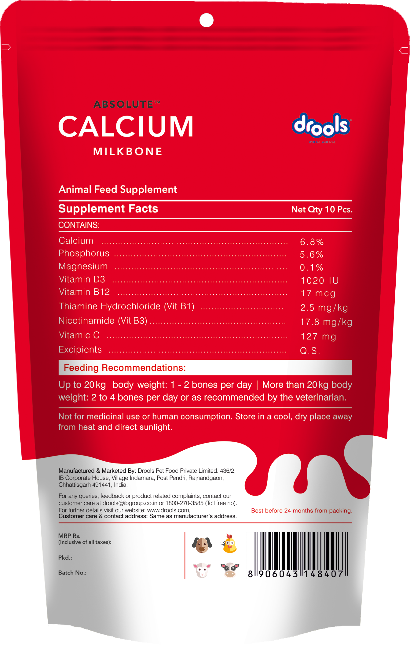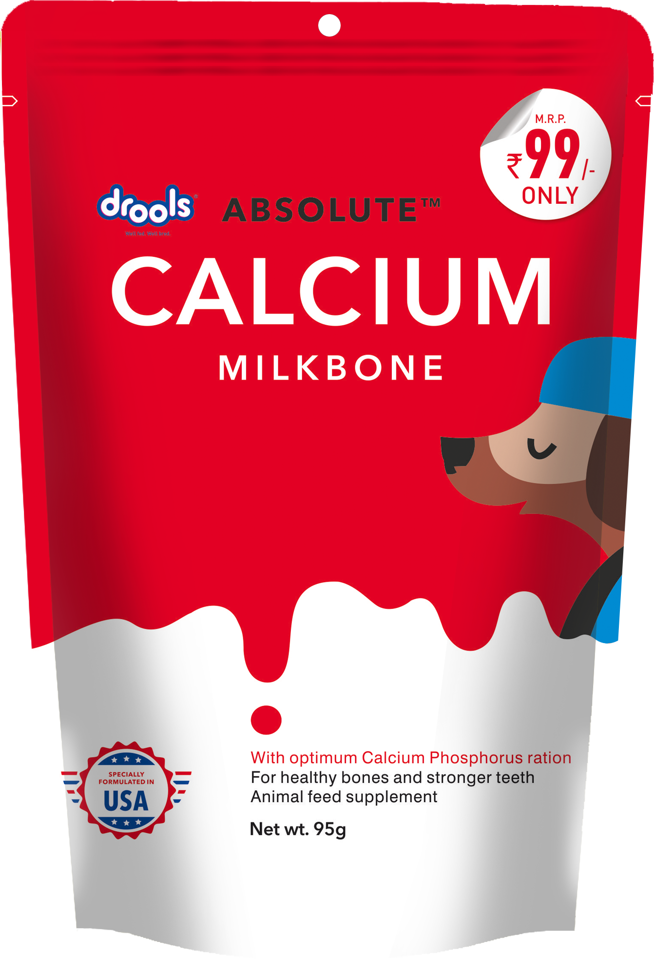 Give your pet the power of calcium with Drools Absolute Calcium Bone. Calcium is very important to us as well as for our pets. Absolute calcium bone supplement has the right ingredients to keep a dog’s bones healthy and functioning at their optimum. It contains calcium and phosphorus in the right ratio, along with all the essential vitamins to increase connective tissue and tendon strength. Daily usage promotes your four-legged friend’s health.
