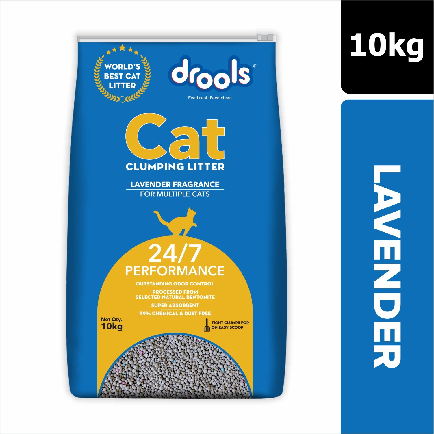 Lavender scented clumping formula, made with natural lavender oil, this formula is ideal for cat parents who prefer the cat litter to be scented. At Drools, we are obsessed with pets. Our veterinary nutritionists have spent years on perfecting the recipes of our products to give your pet a wholesome nutrition with a mouth-watering taste. At Drools, we focus on providing real nutrition to your pets, which is conveniently and readily available for all the pet parents.
