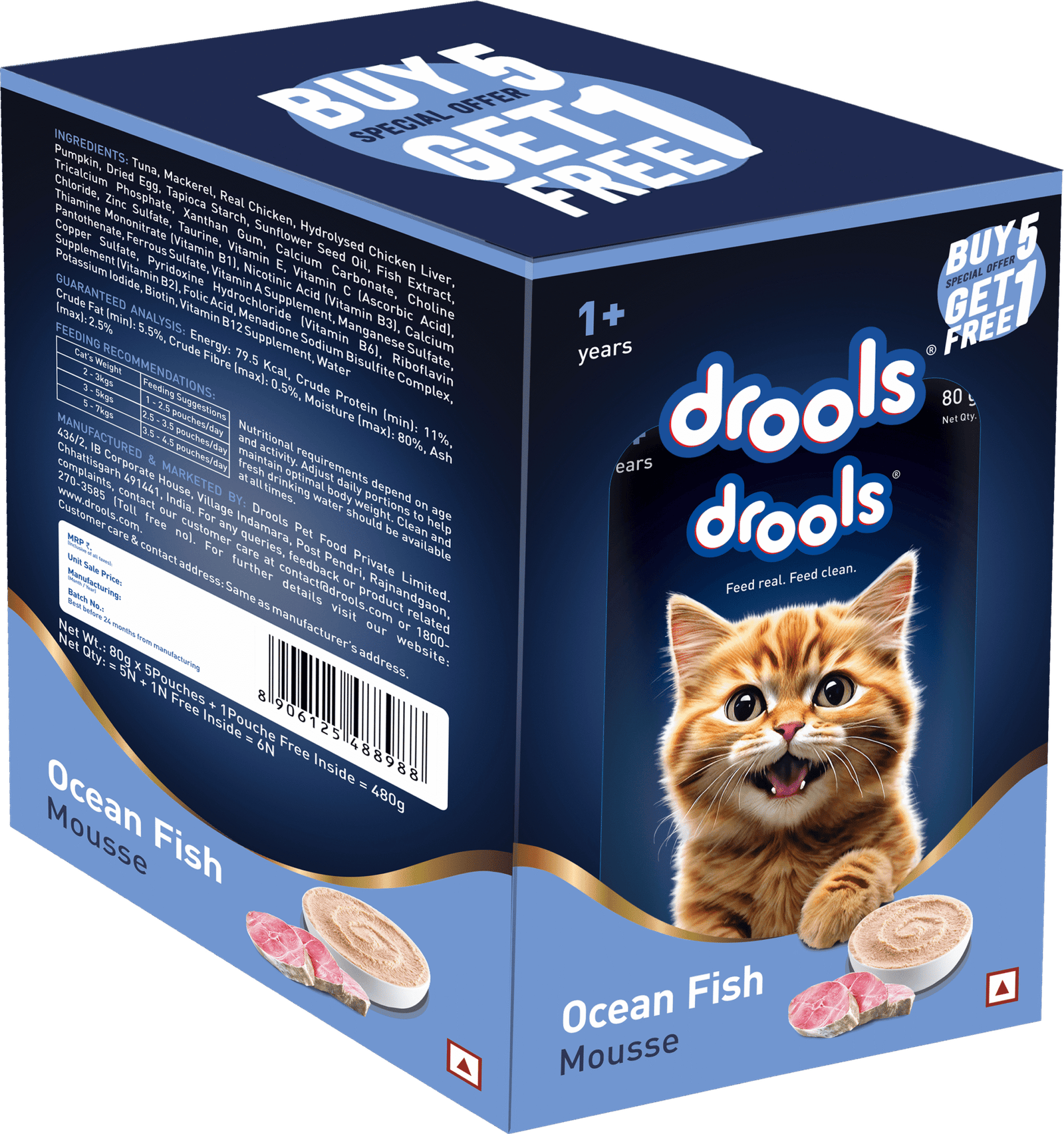 Drools Ocean Fish Mousse Cat 80gm(5+1)Pc