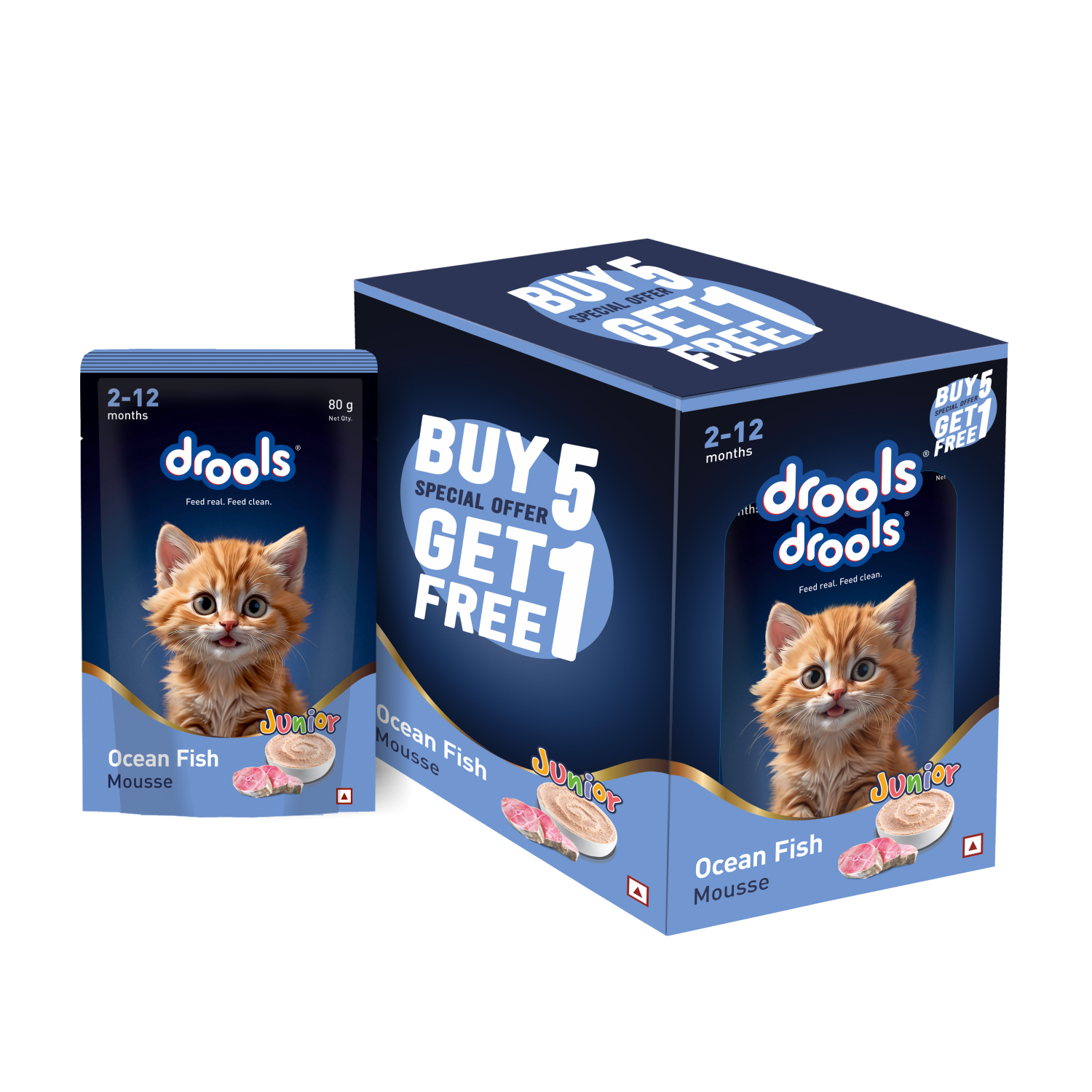 Drools Ocean Fish Mousse is a soft, protein rich wet food specially crafted to support the unique nutritional needs of growing kittens. Made with real tuna, mackerel, and chicken, it delivers high quality animal proteins essential for healthy growth and muscle development. Enriched with pumpkin to support digestion and natural antioxidants like vitamins E and C, it helps build a strong immune system. Its smooth, easy to lick texture is gentle on young tummies, making it perfect for your kitten’s active and developing lifestyle.