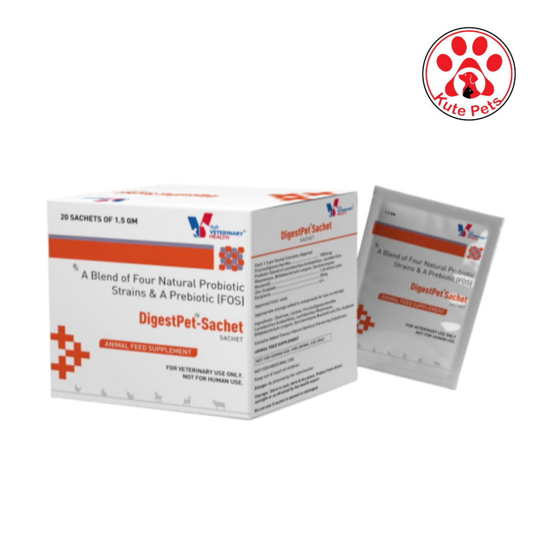 DigestPet Sachet is a probiotic formula designed to restore gut health and balance fluid loss in