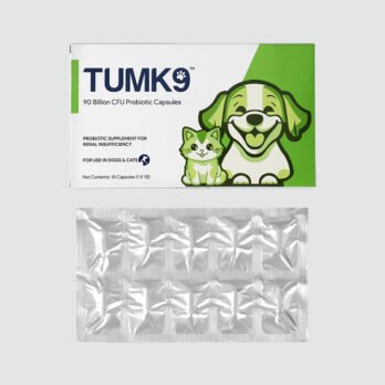 Each capsule of TUMK9 contains Streptococcus Thermophilus, Lactobacillus Acidophilus, Bifidobacterium Longum – 90 Billion CFU (Colony Forming Unit) that will colonize the guts of dogs and cats. These therapeutic microbes will metabolize the uremic toxins as nutrition, bringing down the build-up of uremic toxins, thereby preventing further kidney damage.
