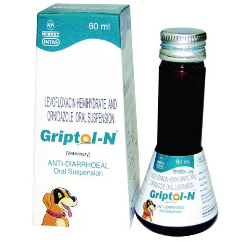 Intas Griptol-N Suspension is indicated for Infectious gastrointestinal challenges. Contaminated water, food, or faeces causes the transmission of pathogenic bacteria and protozoa. These mixed infections lead to dysbiosis, diarrhea, malabsorption, and dysentery. Griptol-N Suspension provides firm control over diarrhoea. It has a broad spectrum of efficacy against Gram (+), Gram (-), Aerobic, and anaerobic bacteria. High efficacy against Coccidial, Giardial, and other protozoal infestations. It offers superior bioavailability and safety profile compared to metronidazole. It has the convenience of application with oral feeding spoon.