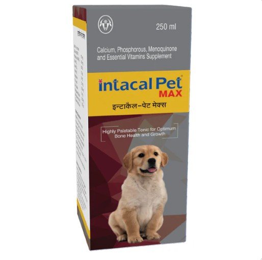Intas Intacal Pet Max is a Calcium – Multivitamin supplement indicated for the healthy growth and development of pets right from fetal stages. The combination of calcium with other essential vitamins ensures the proper bioavailability of calcium required during growing stages.