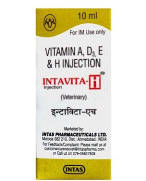 INTAVITA INJ is a comprehensive veterinary supplement, ideal for a broad spectrum of animals including dogs, cats, livestock, and smaller pets. Produced by the trusted brand INTAS, this 10ml injectable vial is enriched with essential vitamins to support the overall health and well-being of animals.