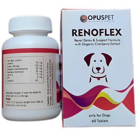 Renoflex tablets are renal supplement for dogs. It protects, cleanses and improves renal function. It is a renal detox and support formula with organic cranberry extract.