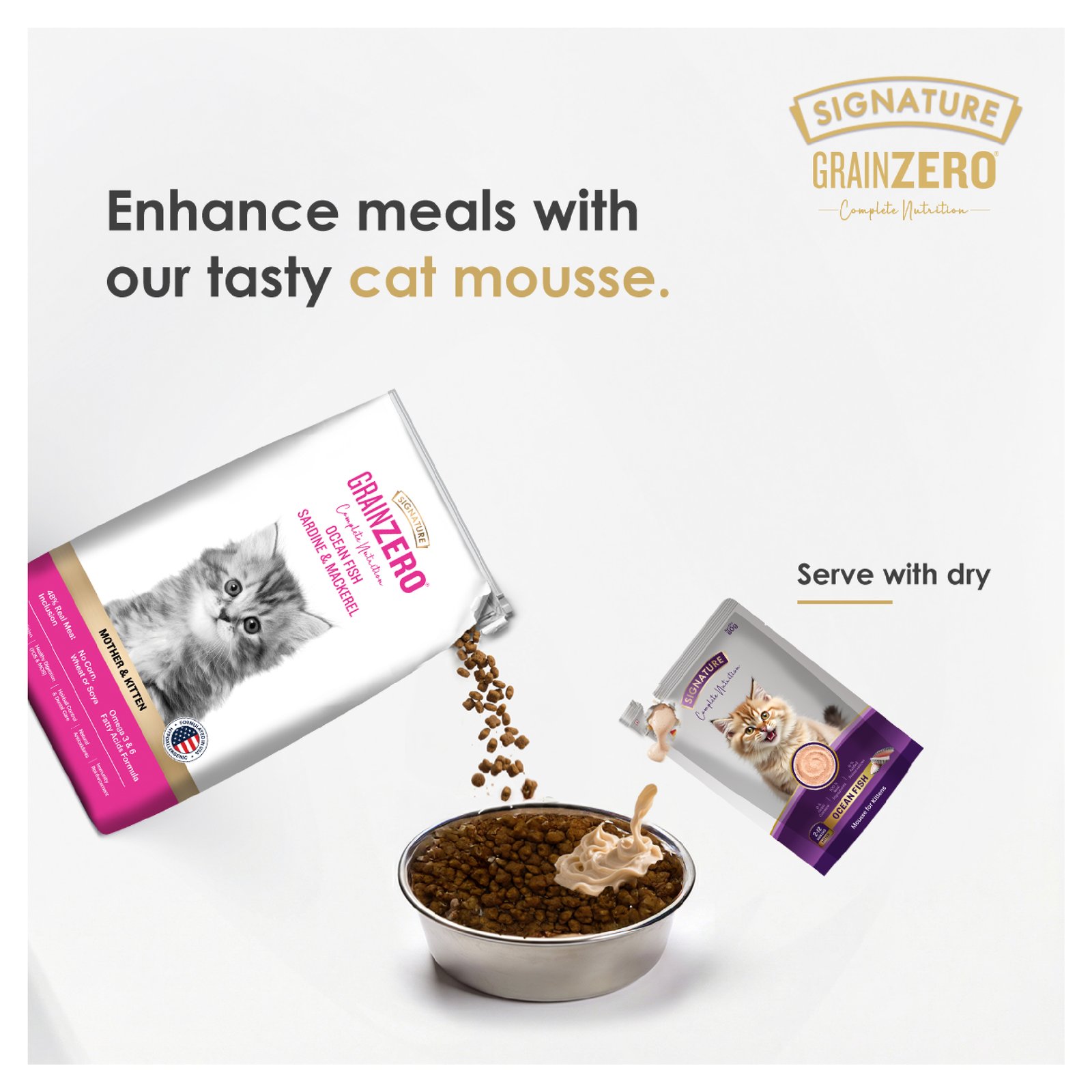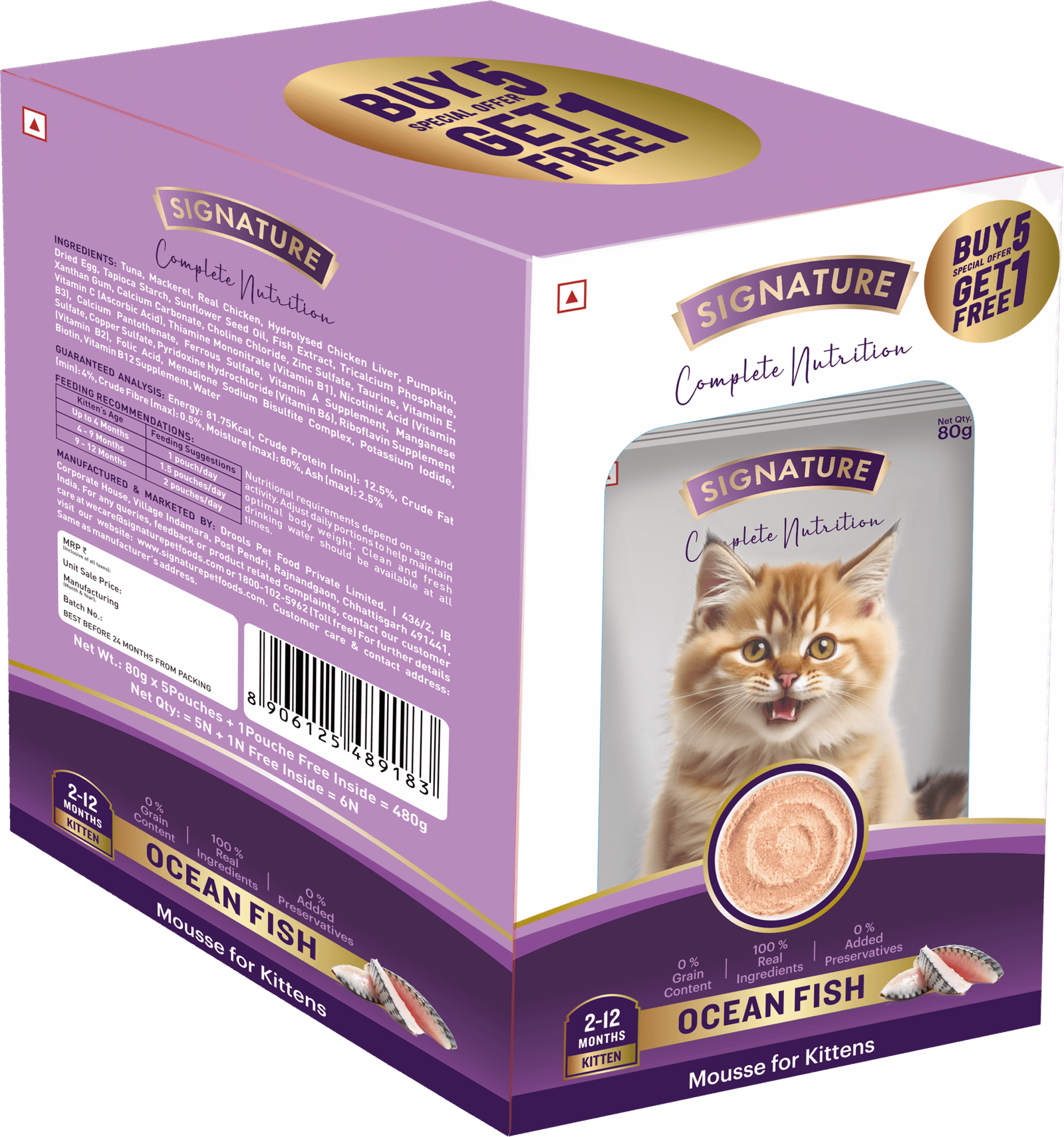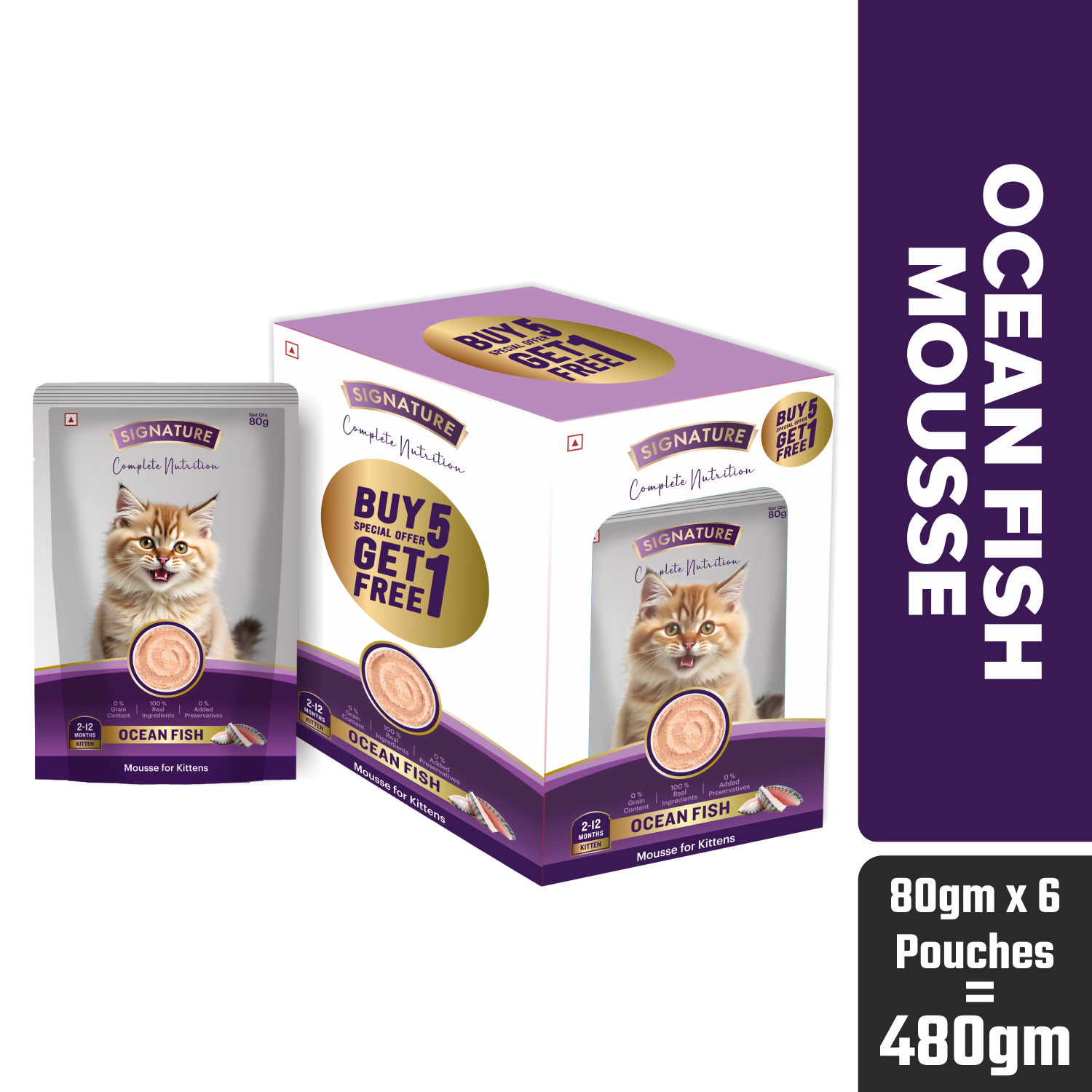 Signature Ocean Fish Mousse for Kittens offers complete nutrition with real tuna, mackerel, and natural ingredients to support healthy growth and development. This grain-free recipe is enriched with taurine for heart and vision health, and helps build strong muscles and a shiny coat. Its high-moisture formula supports easy digestion and overall wellness. With no added preservatives and a smooth mousse texture, it’s specially crafted to meet the unique nutritional needs of growing kittens.