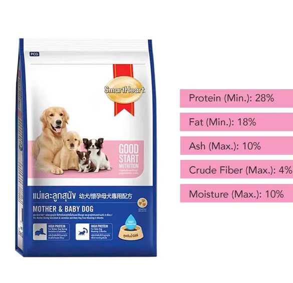 Provide the best start in life for your puppies and support the health of their mother with SmartHeart Mother & Baby Dog Food – a nutritious choice for this crucial phase.