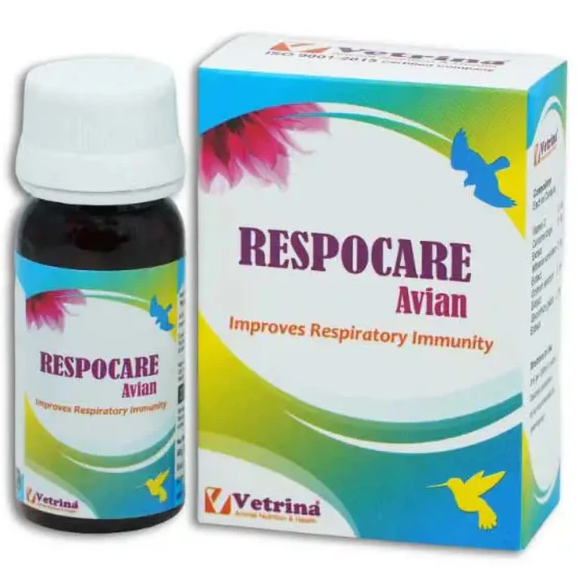 Vetrina Respocare Avian Drop is a specialized respiratory care supplement meticulously formulated to support the respiratory health of various avian species. This potent blend of Ayurvedic ingredients is designed to provide holistic care and relief for your feathered companions, ensuring their overall well-being and vitality.